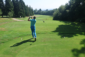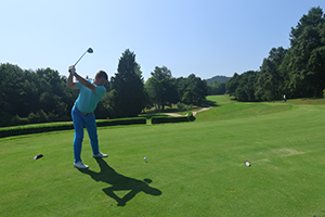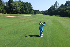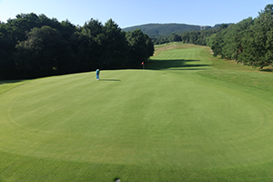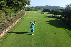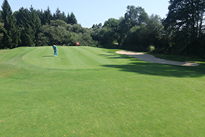 Largo par 5 en subida. La calle es amplia y gira hacia la izquierda, sin embargo un espléndido roble situado en el centro de la calle nos exigirá tener clara la estrategia desde el tee. Green alargado con dos plataformas protegido por 2 bunkers en la parte izquierda.