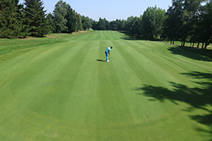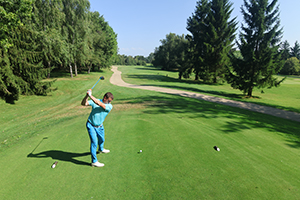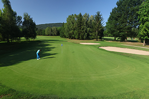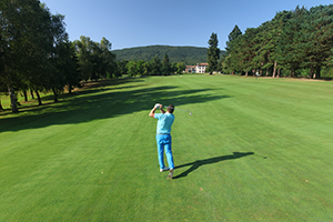 Largo par 4 en dog leg para dar inicio al recorrido. El golpe de salida debe ser poderoso y el jugador deberá situar la bola entre los árboles. El segundo golpe gira ligeramente a la derecha. El green está ubicado en alto, por lo que la elección del palo será vital para acceder a un green protegido por un bunker frontal.