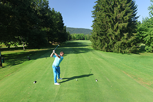 Precioso par 3 en bajada. La belleza del entorno oculta la verdadera dificultad de este hoyo. Salida entre árboles que requiere un certero golpe de salida a un green protegido por un bunker y sobre todo un lago en la parte izquierda. Green en dos plataformas, siendo la situada en la parte alta done las posiciones de bandera son más difíciles.