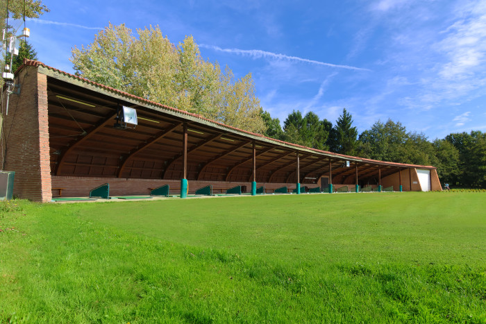 Cancha de prácticas con zona cubierta y exterior, tepes y césped, 2 bunkers, 3 putting green, sala de fitting y trackman.