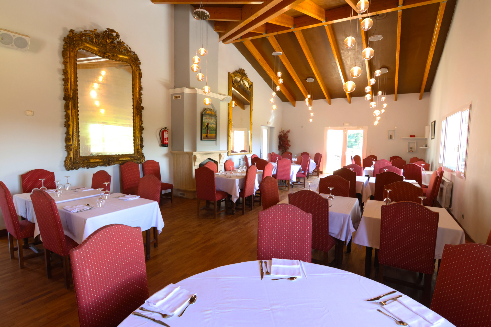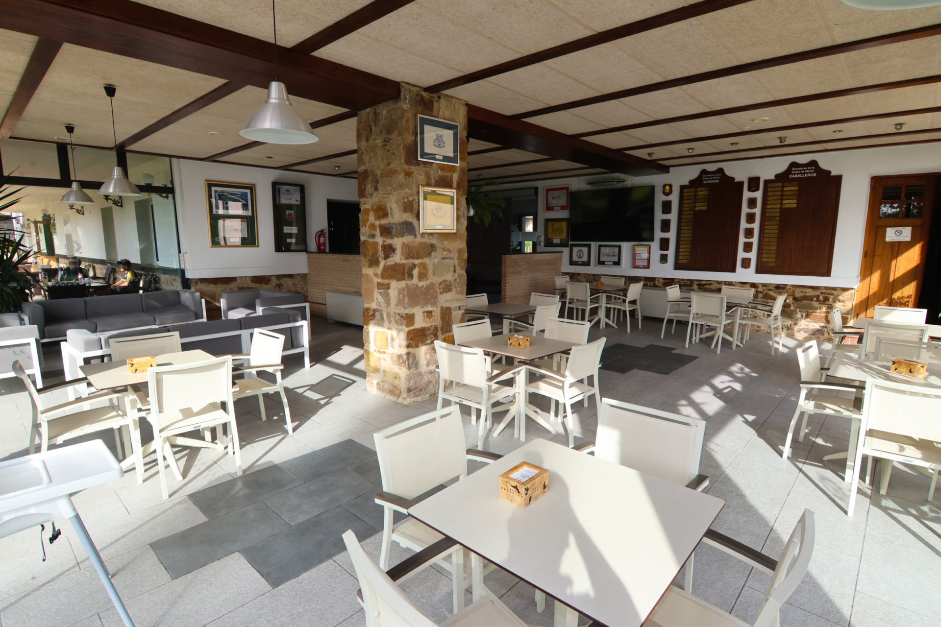 La amplia cafetería está situada en la planta baja del edificio de restauración.