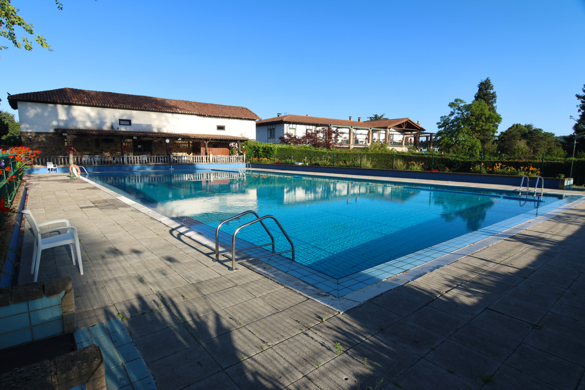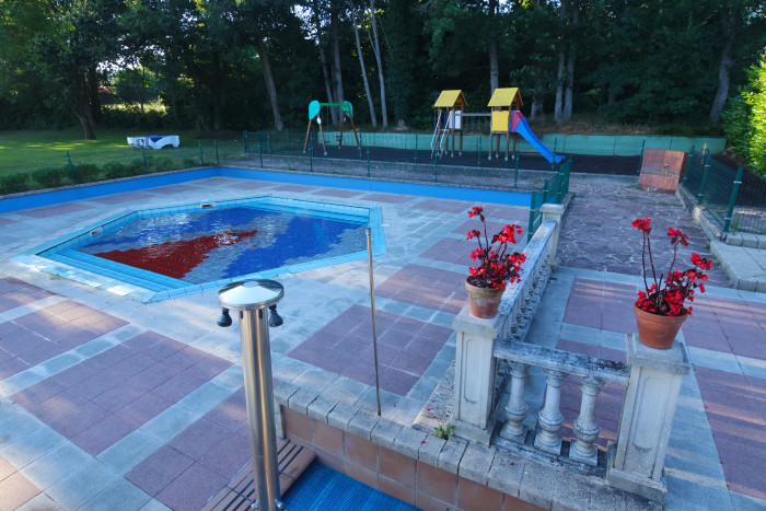 Durante los meses de verano se abre la zona de baño. El recinto cuenta con una fantástica piscina de 25 x 12 metros para los mayores y otra hexagonal para los más pequeños.